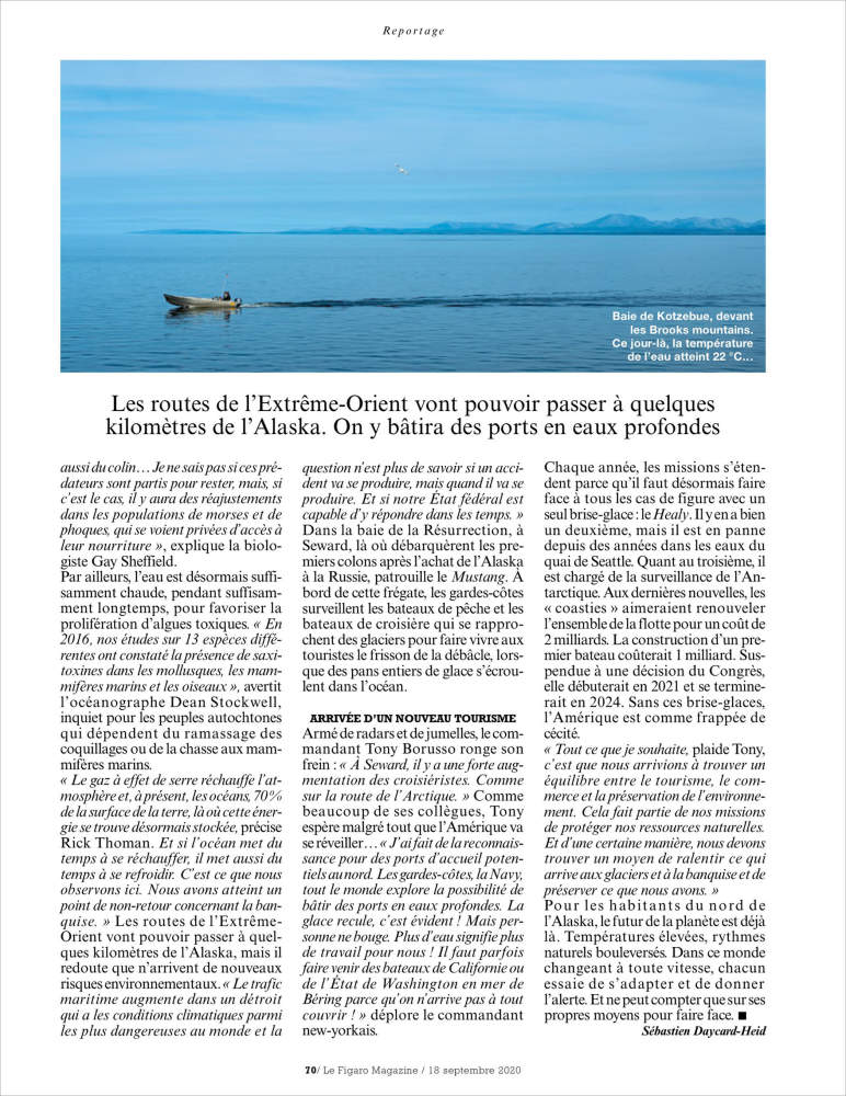 Lauren Weyl’s story on Operation Arctic Shield in Alaska has been published in Figaro Magazine.