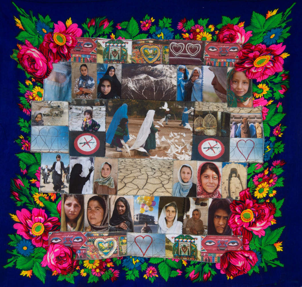 During lockdown I made a series of patchworks which have given me an opportunity to assess the work I’ve done over the last twenty years as a documentary photographer concerned with the effects of war on women’s lives globally. I edited photos from my archive and printed them onto A4 sheets of linen that I then sewed together to make a series of patchworks, backed onto different textiles that I in those countries. Each patchwork is a visual statement of women challenging attempts to control their lives during and after conflict.