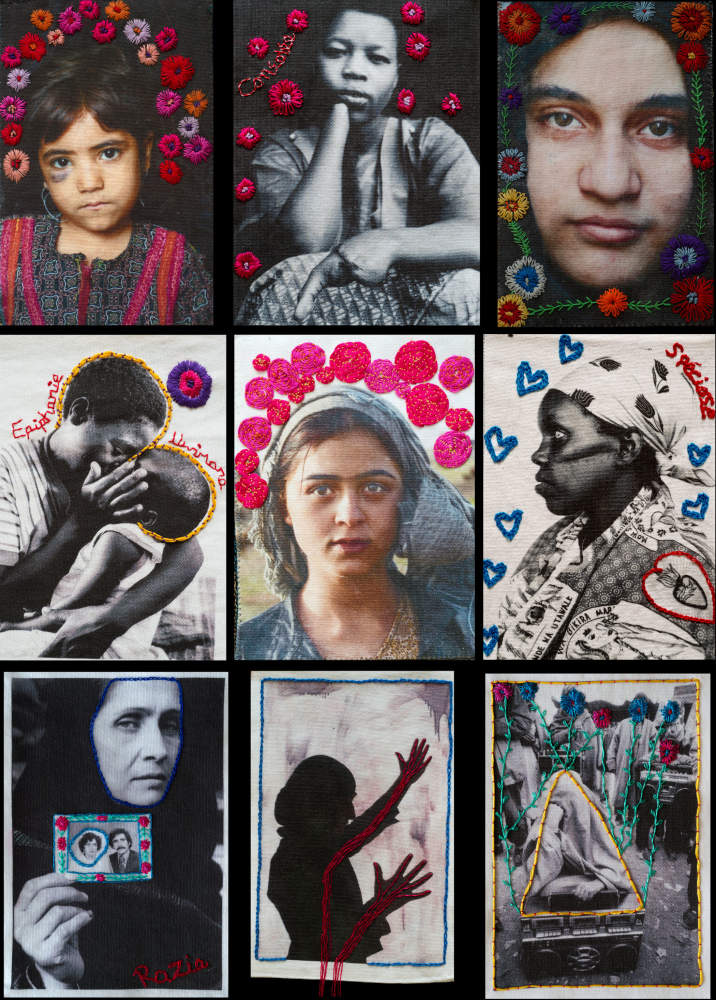 The making was a slow process that allowed me to organise memories and contemplate my experiences from each country. In effect I took control of an unruly archive. Ialso added embroidery to some of the portraits as a way of honouring women I met in the course of my work.