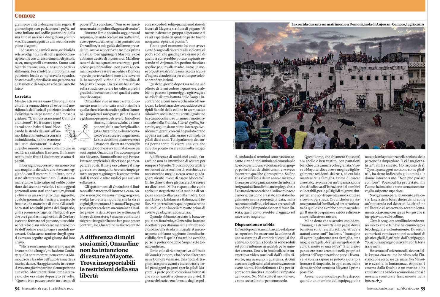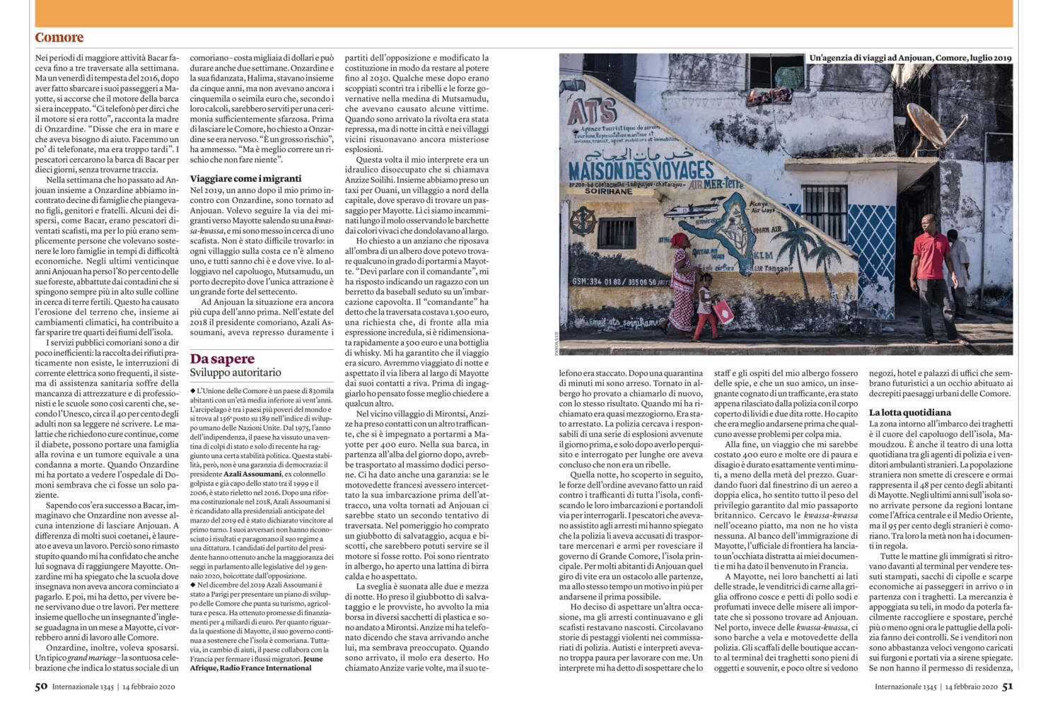 Tommy Trenchard’s recent report on the island nation of Comoros and the attempts made by local people to reach the island of Mayotte, which is part of France, has been published in the Italian magazine Internazionale.