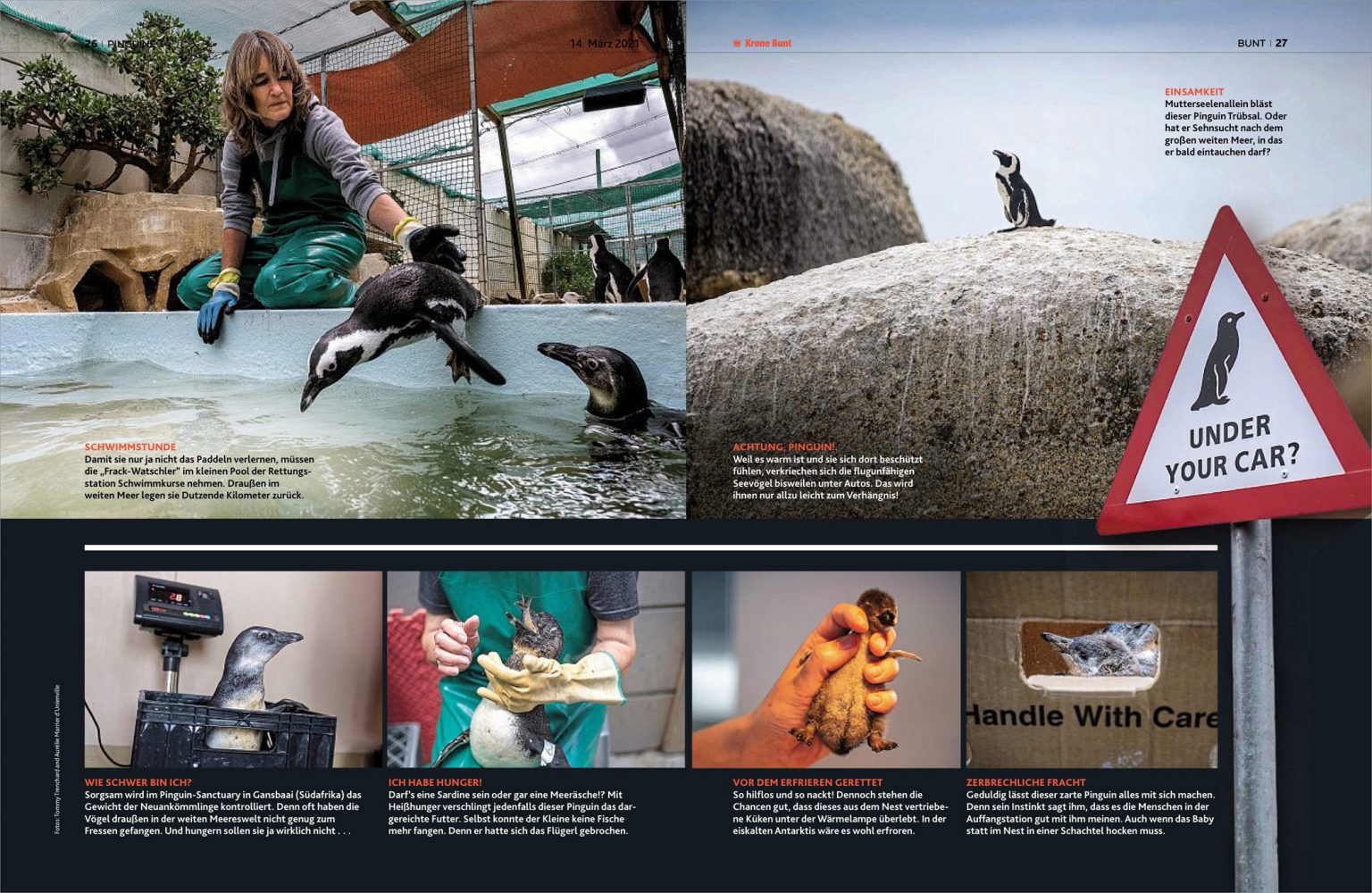 Tommy Trenchard‘s photo story, produced in collaboration with Aurelie Marrier d’Unienville, on the endangered African penguin has been published in Austria’s biggest newspaper, the Kronen Zeitung.