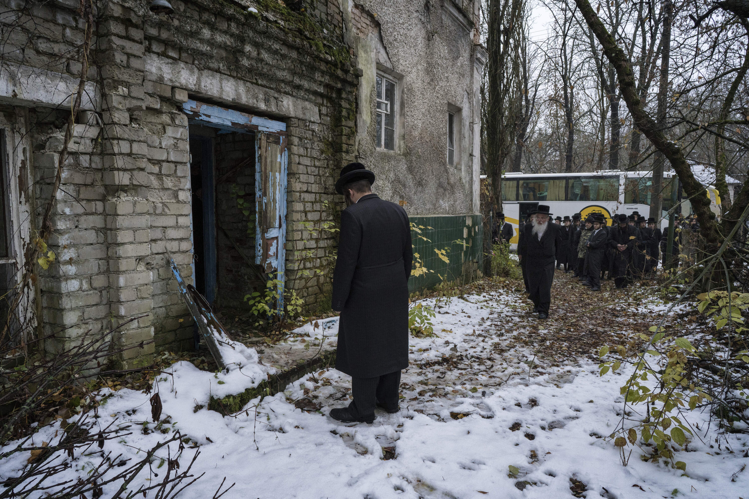 Tourist members of Jewish Hassidic community waiting to enter the former Chernobyl Synagogue within the exclusion zone. Since the Russian invasion in 2022 all tourism to the area has been halted.