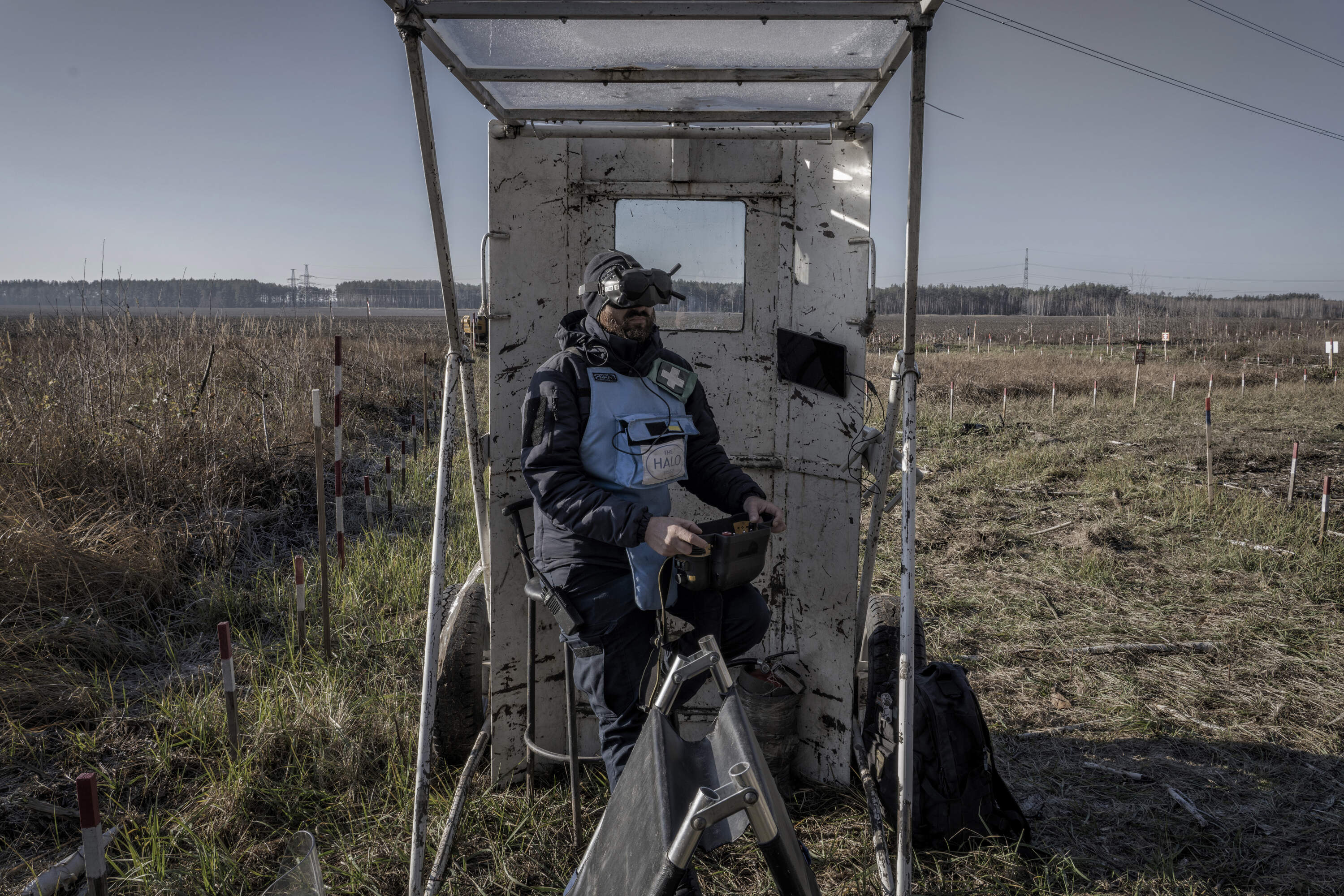 A deminers from the NGO HALO Trust using a drone to locate landmines laid by the Russians just outside the Chernobyl exclusion zone. (11/2025)