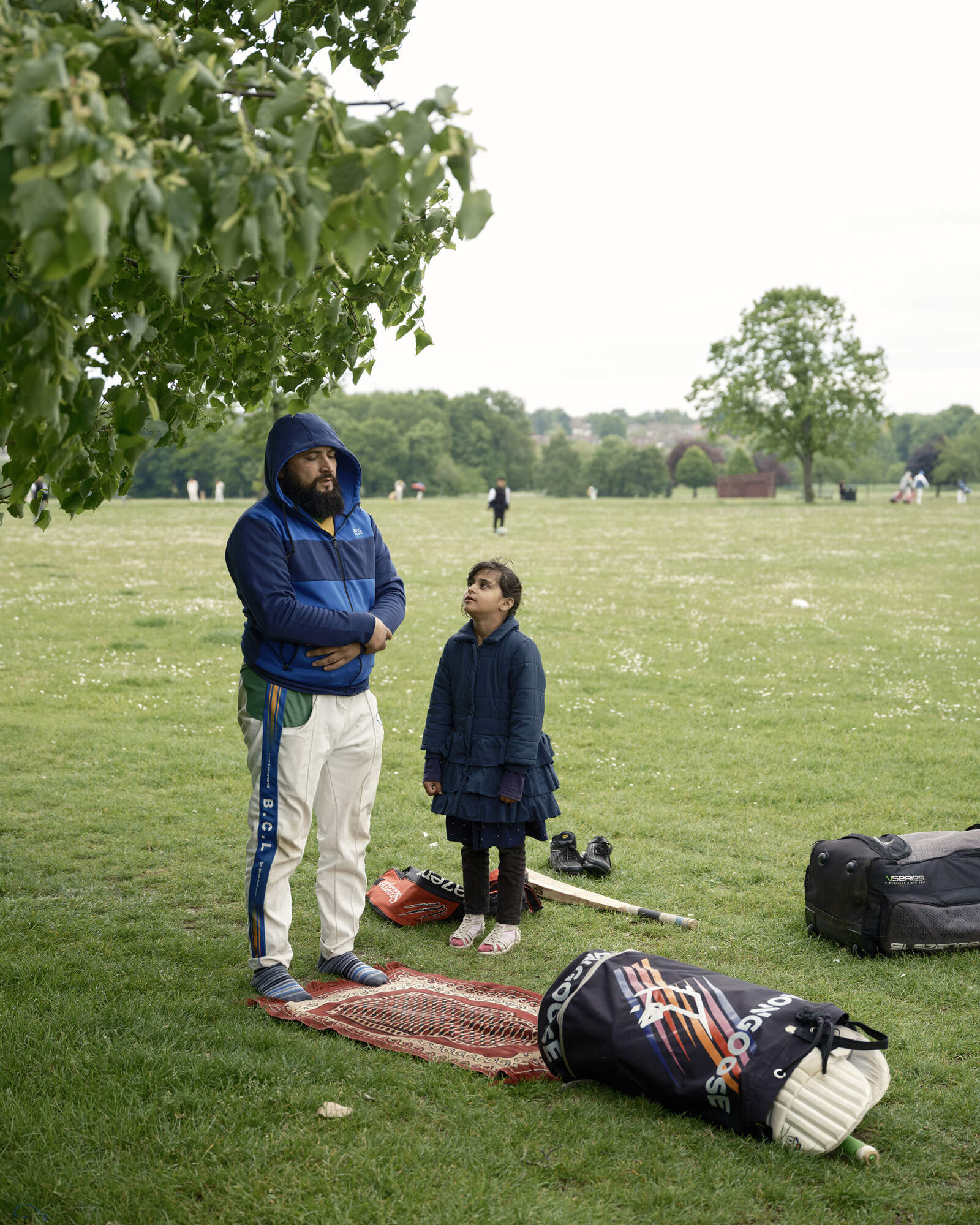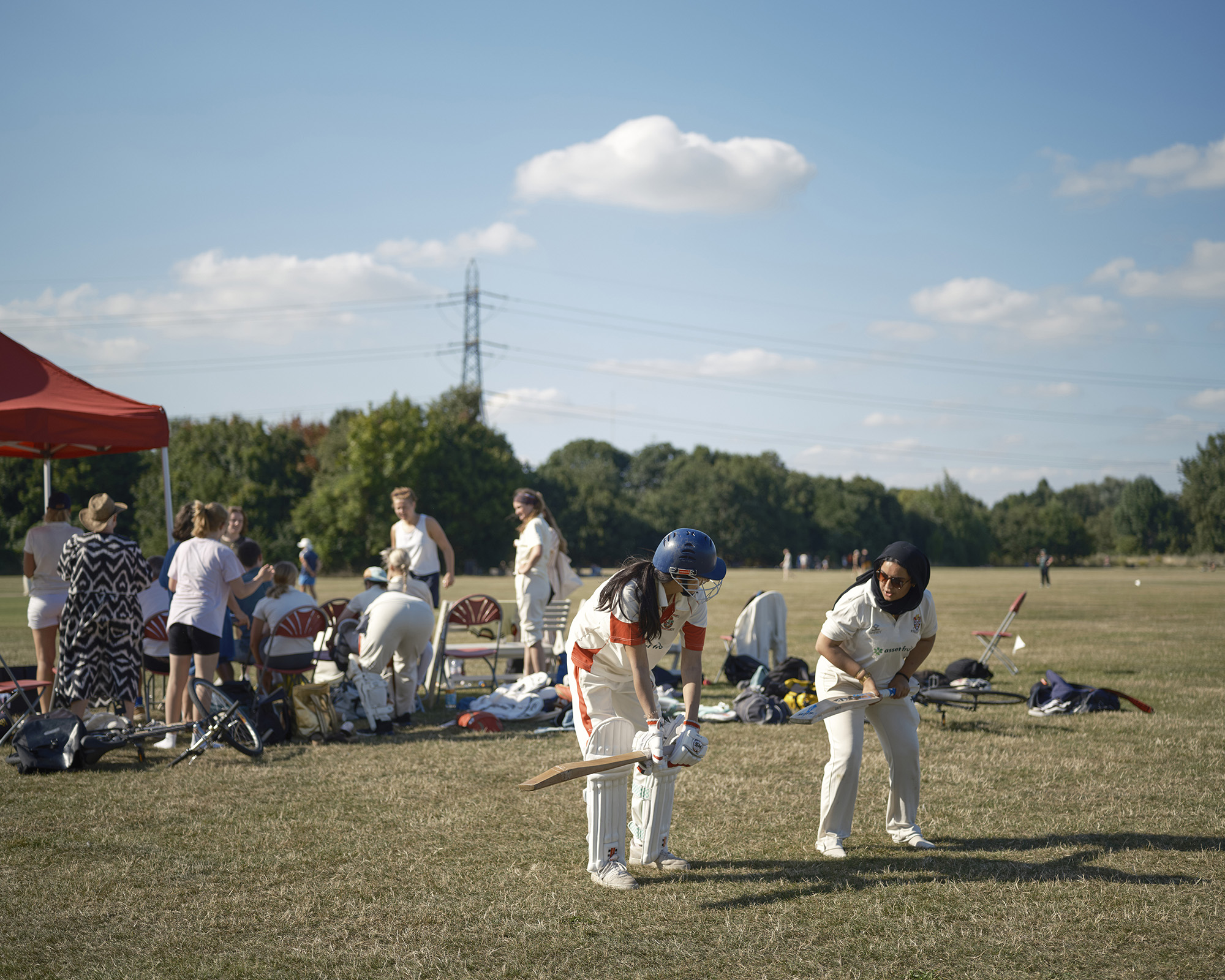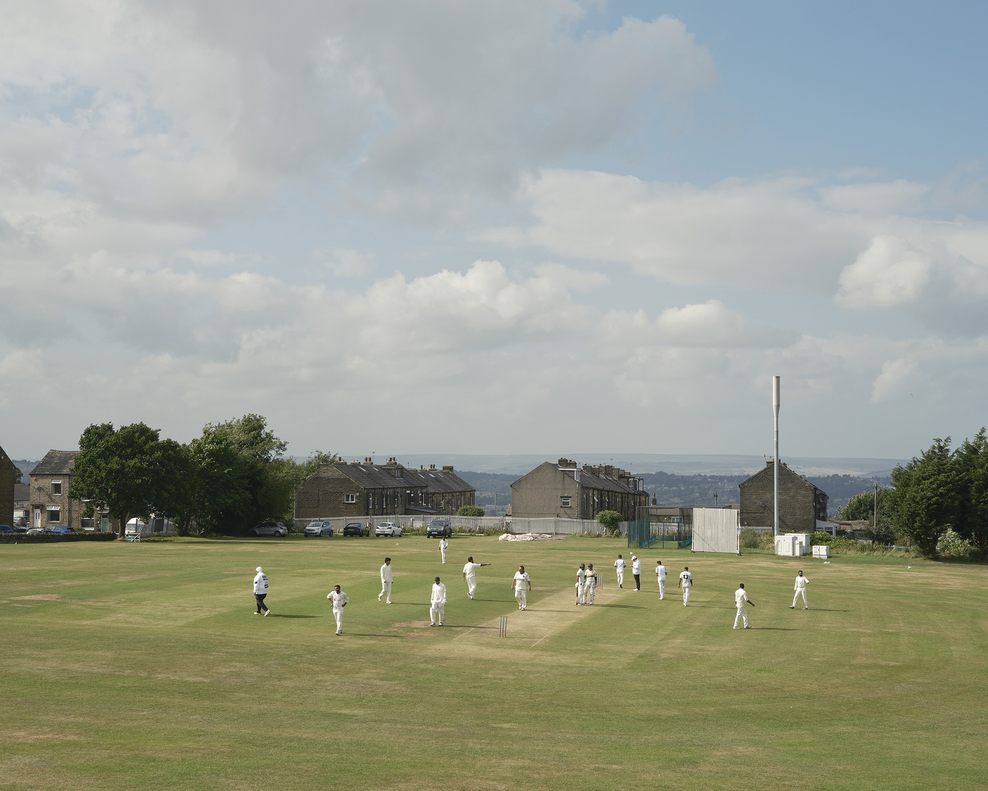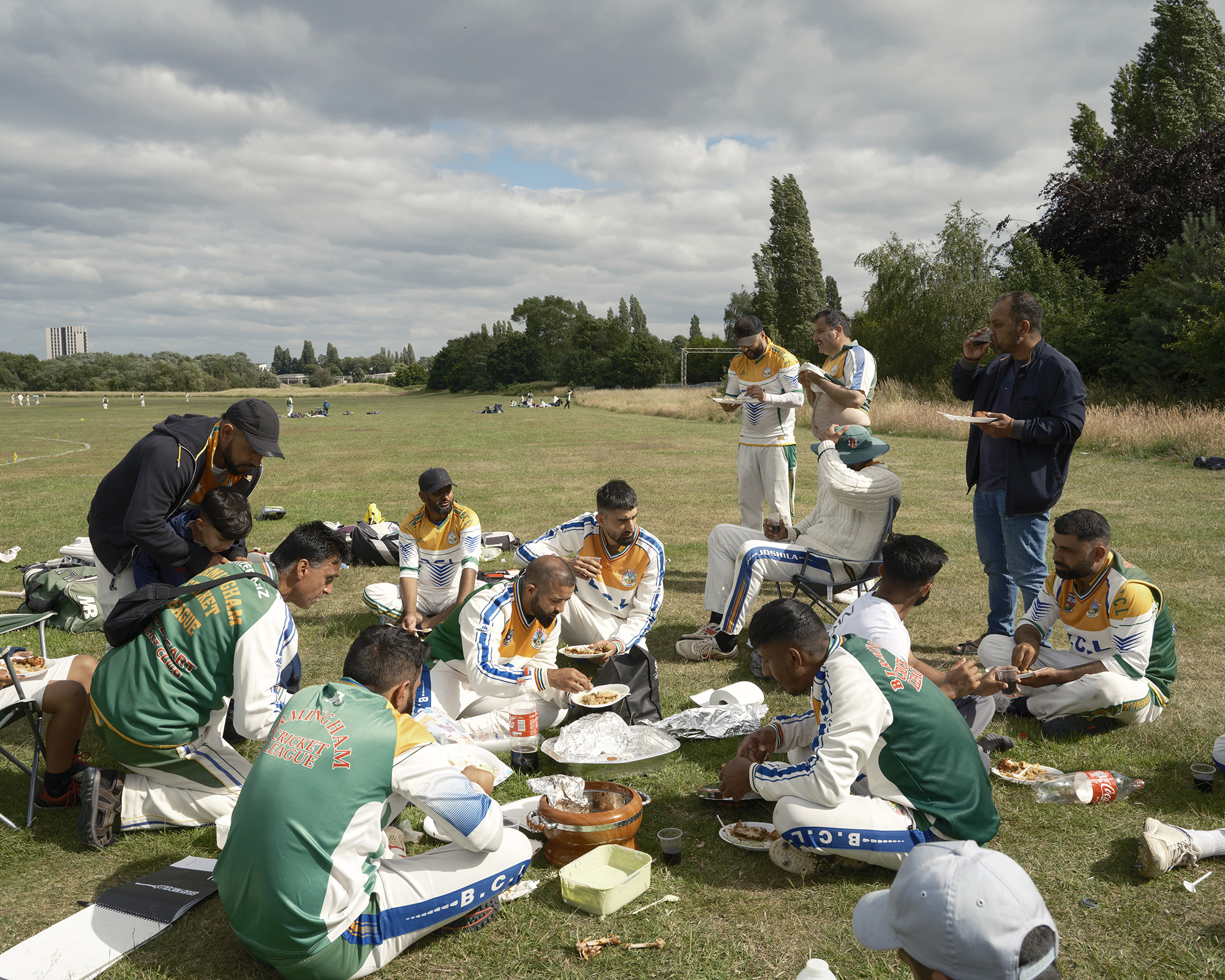“One of the more remarkable places I went to was Perry Hall Park in Birmingham. It's an amazing place with 16 cricket pitches all squeezed into a park often with the cricket pitches crossing over eachother so that all the players will be on different pitches looking in various directions. It is the home of the Birmingham Cricket League, which is one of the oldest Cricket Leagues is in the world and it's mainly played by players of Pakistan heritage. Everyone seems to know everyone and as a community it is fantastic with all the kids running around who will know each other. The parents are there playing on various different pitches and at lunchtime, a huge Biryani appears, and they all eat together, which creates a wonderful sense of community. What was lovely was that they always insisted that I ate first - a lovely gesture - but one which is quite hard when I wanted to photograph what they were doing!