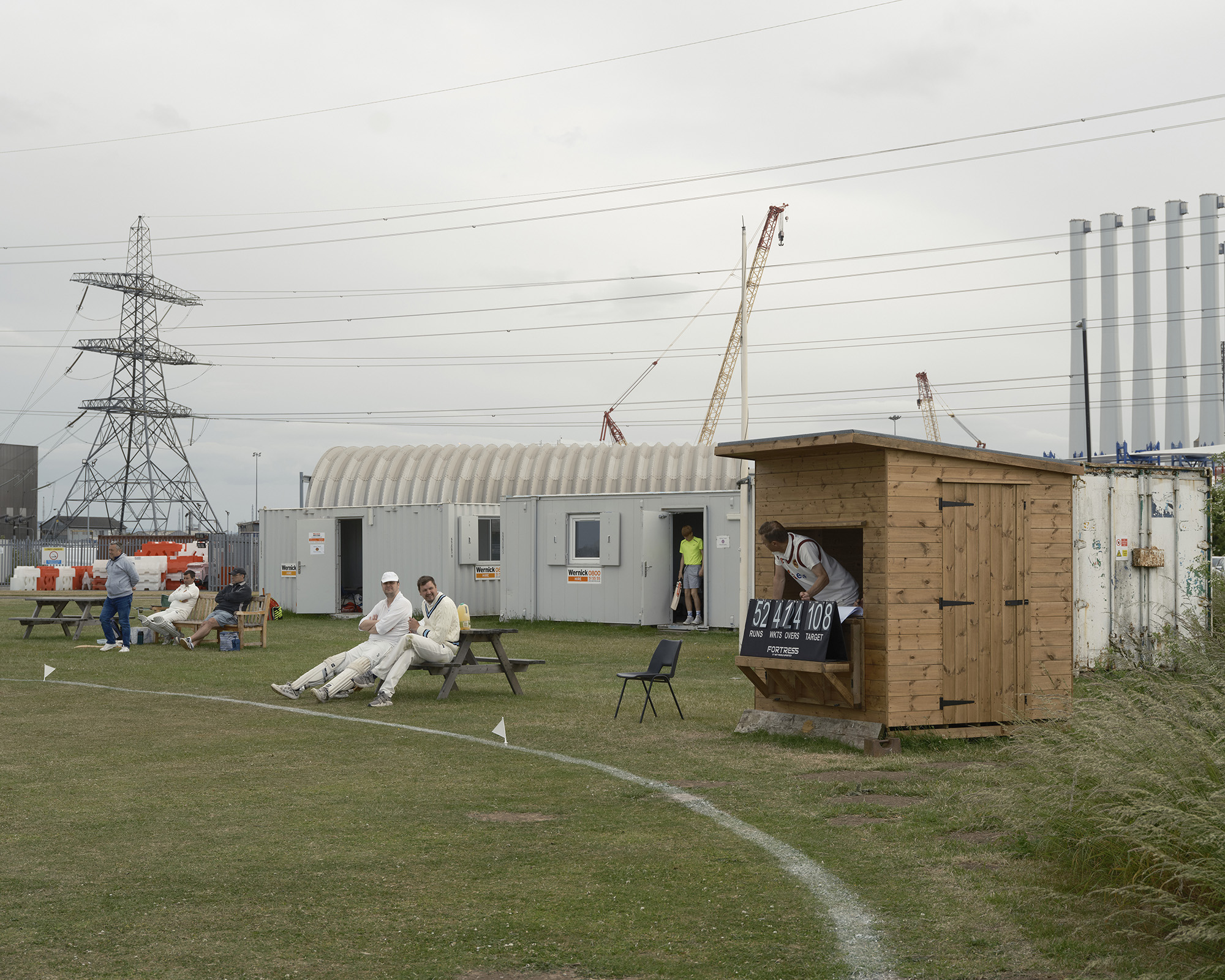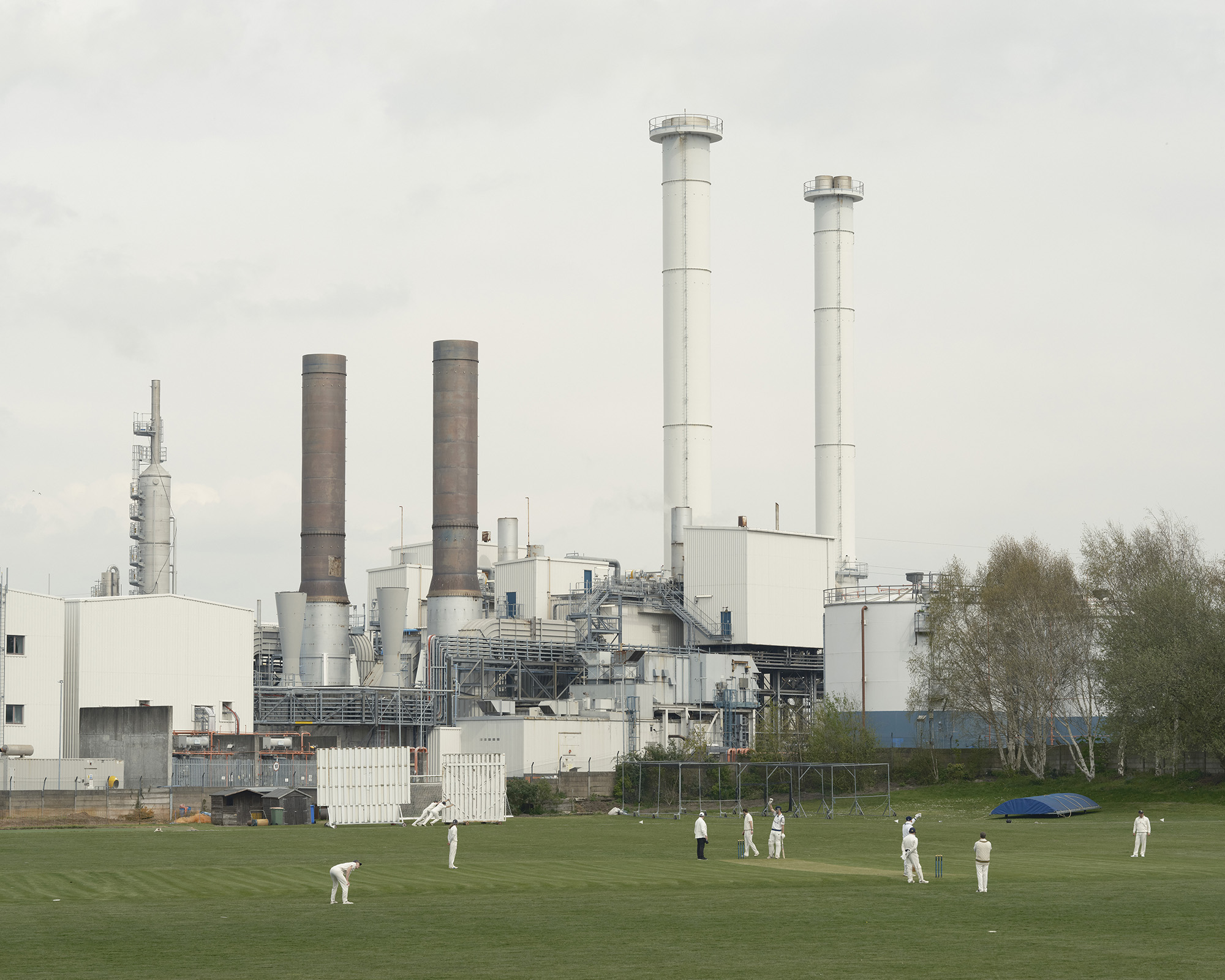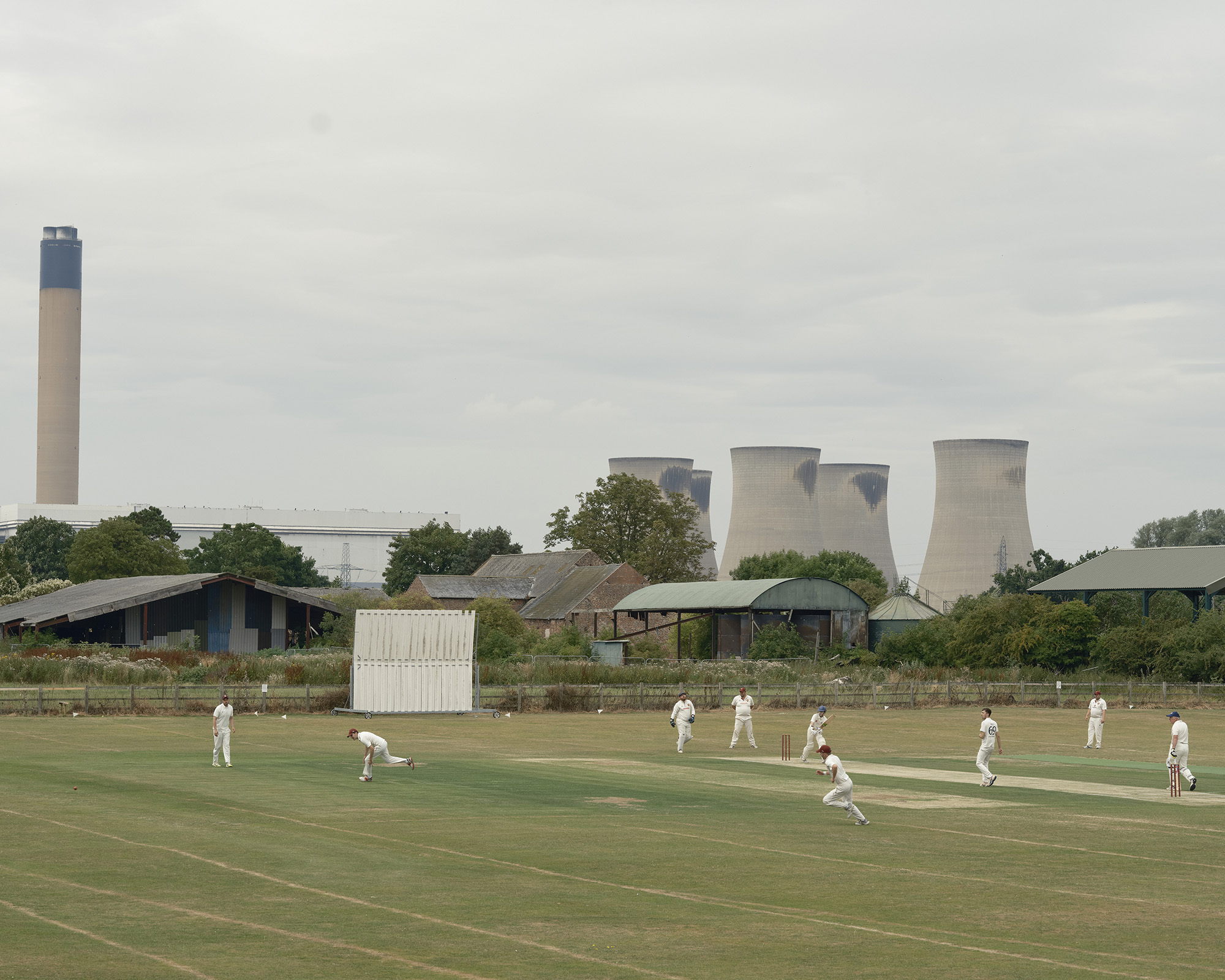 Tom’s Portrait of Cricket sets out to challenge the accepted view of the grassroots game across the country - often shown being played on leafy bucolic village greens by white middle class middle aged men with a pub, a church and a thatched cottage in the background. For many who play cricket this is not their reality. The game has very strong working class roots, particularly in the North of England, where many clubs were born out of works crickets teams (teams made up of workers for industries such as the railways, collieries and chemical works). This is reflected in Tom’s photographs of the Winnington Park chemical works team and Hartlepool Power Station cricket club who play beside the nuclear power station on a bleak flat landscape.