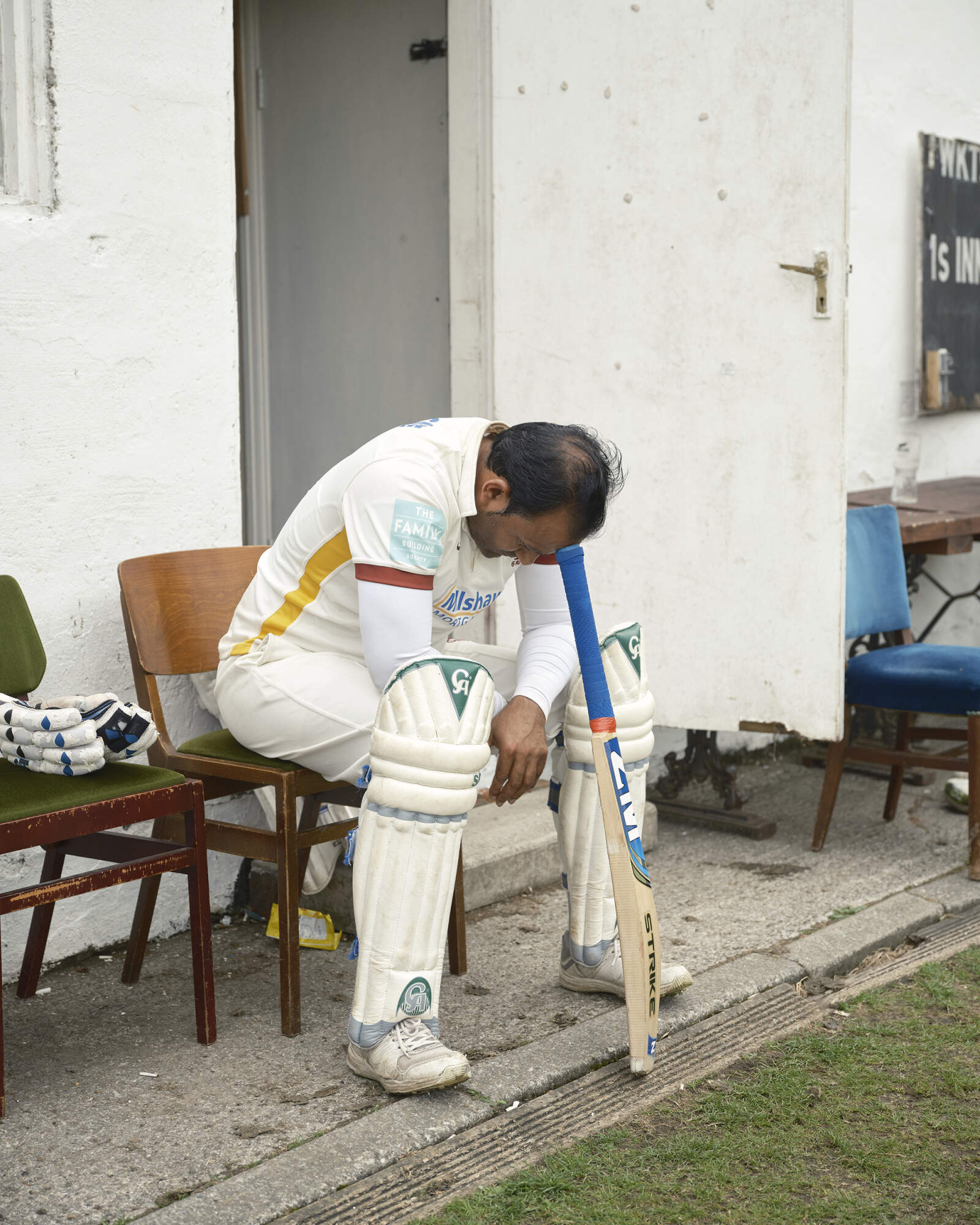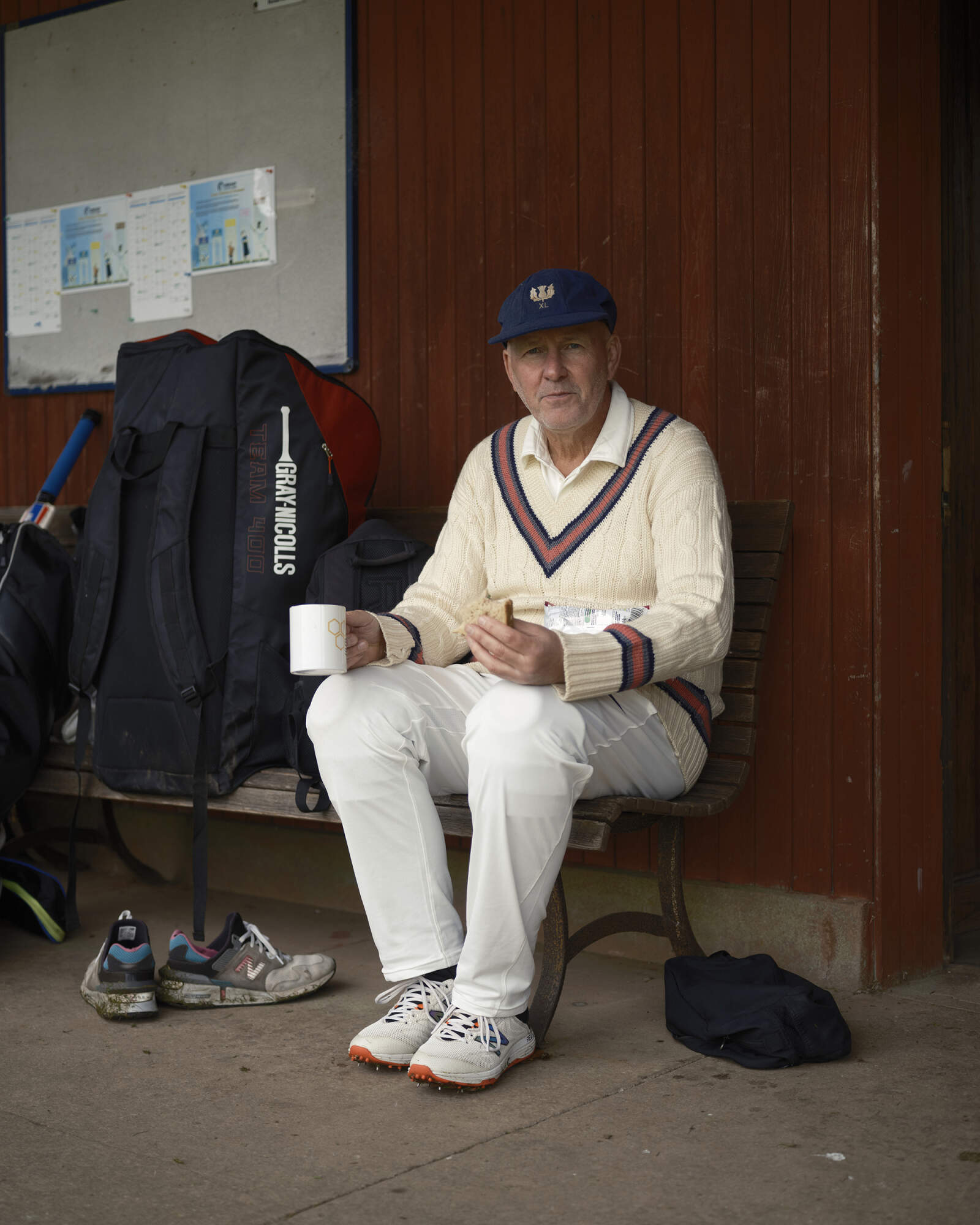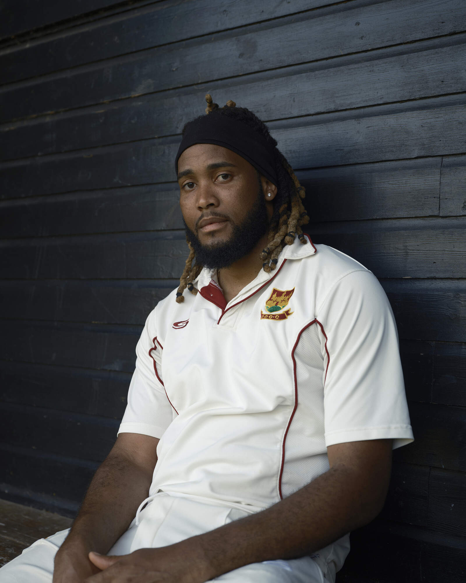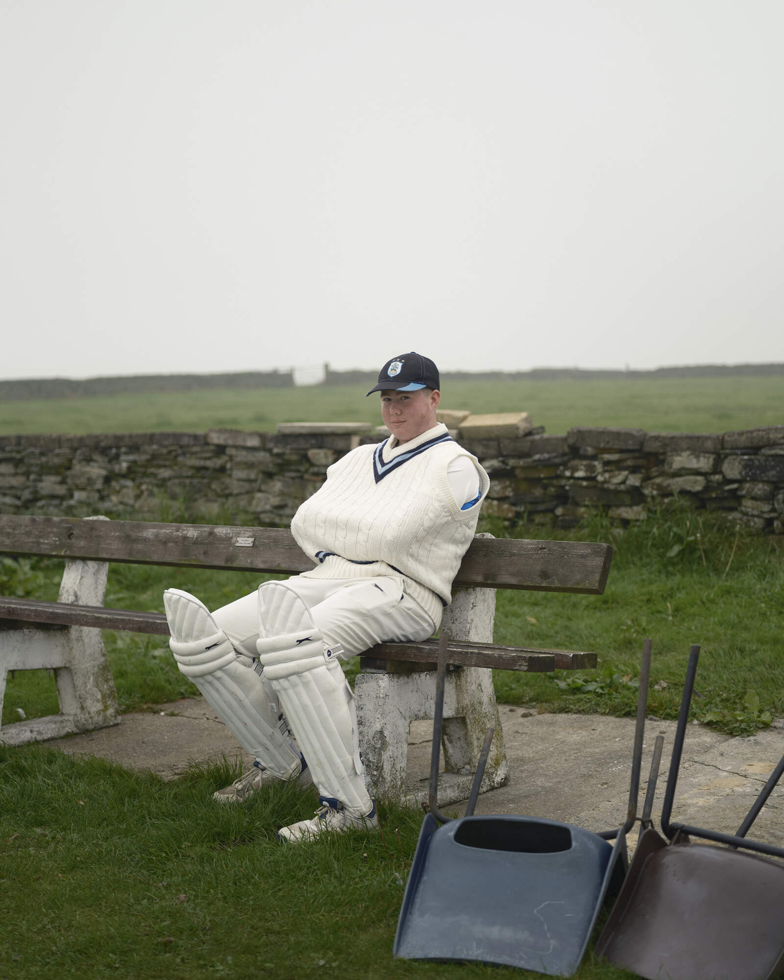 QUEENSBURY, ENGLAND. James poses for a portrait while waiting to bat at Queensbury Cricket Club