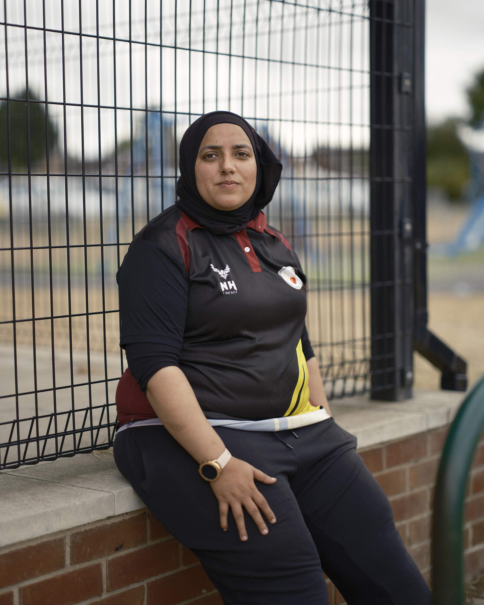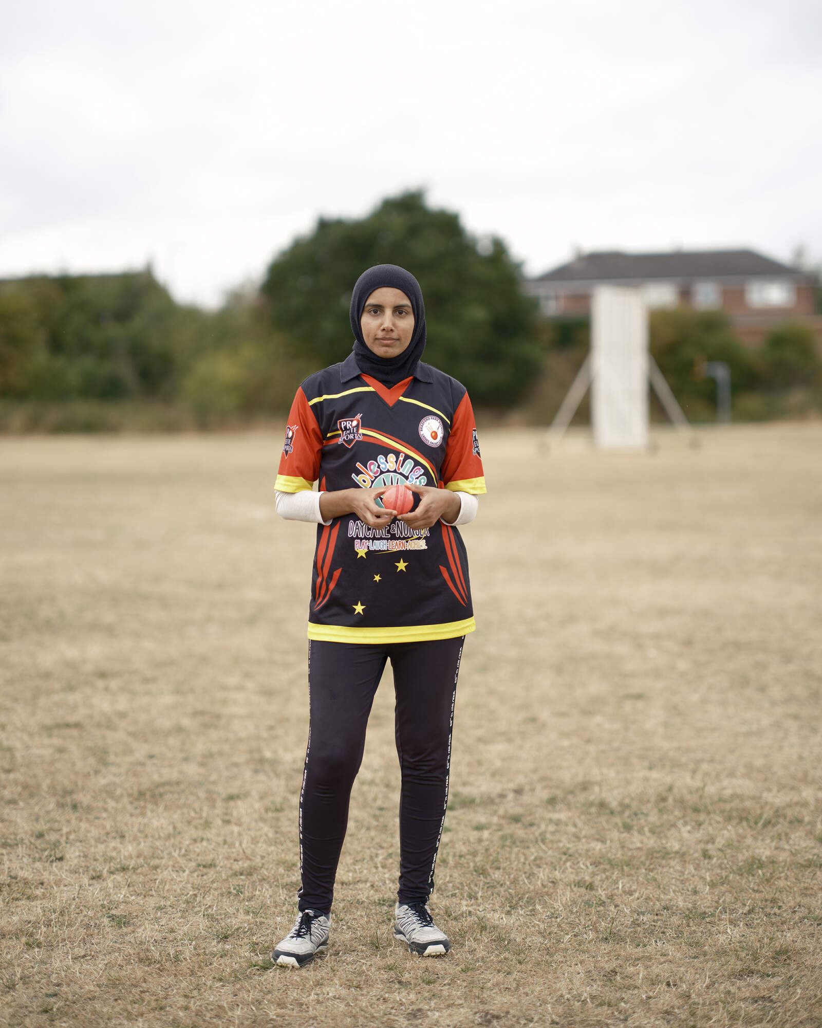 DONCASTER, ENGLAND. Nabila from Bradford Park Avenue Ladies Cricket Club poses for a portrait at Doncaster Cricket Club