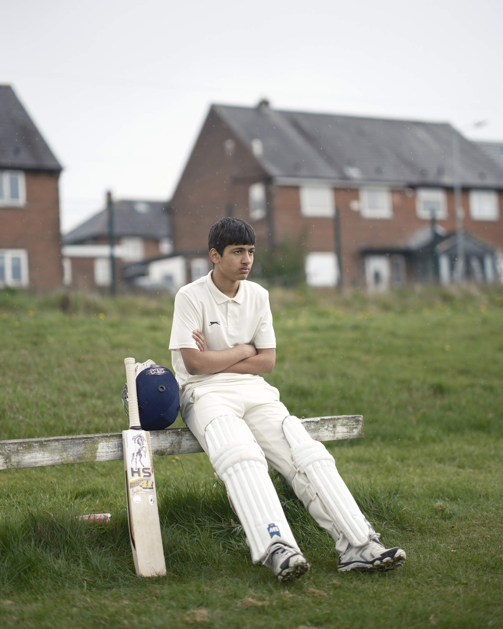 BOLTON, ENGLAND. A portriat of Bilaal as he waits to bat at Bolton Deane and Derby Cricket Club