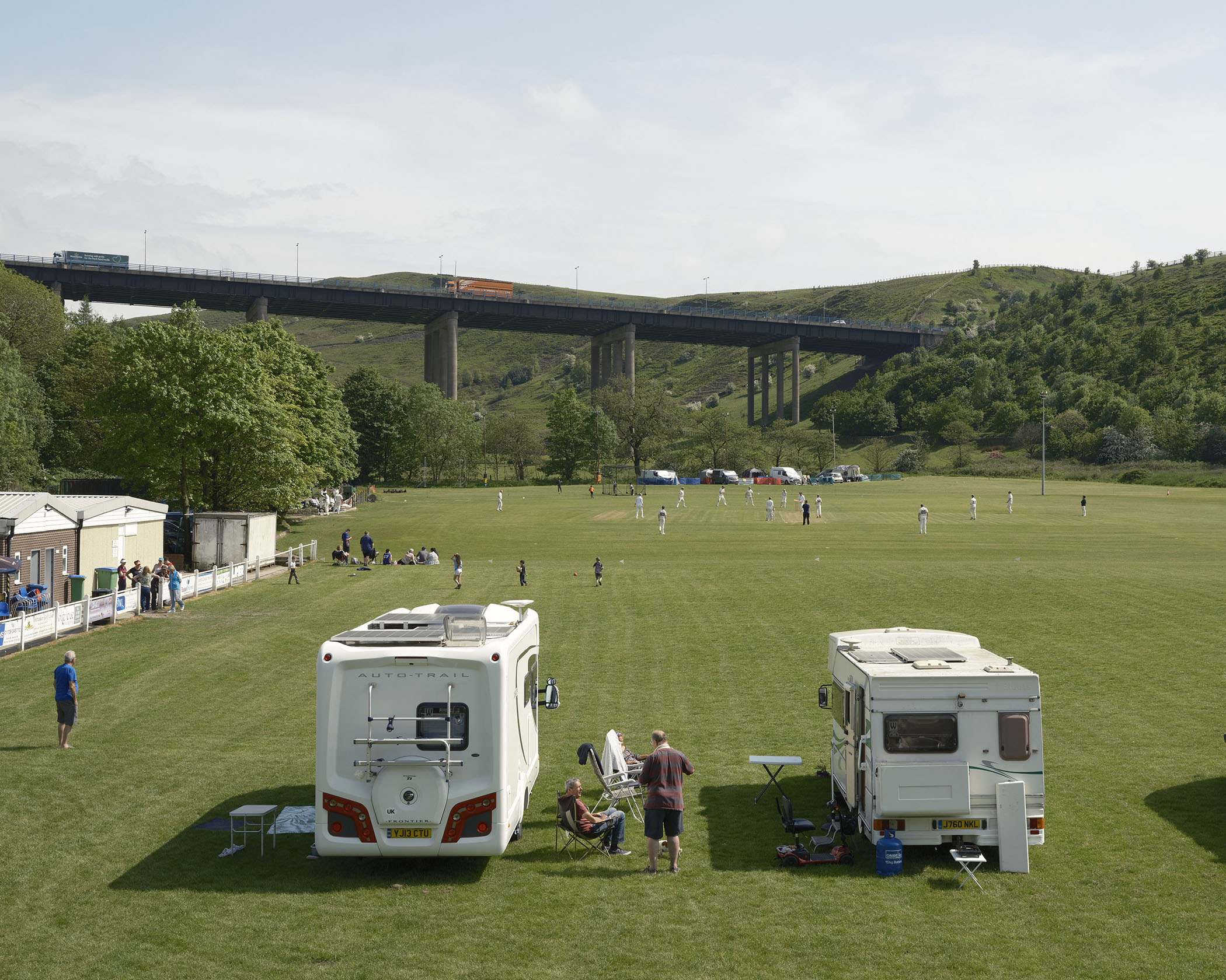 LITTLEBOROUGH ENGLAND. View of the ground at Littleborough Lakeside Cricket Club. A ground that is virtually under the M62, with the adjoining rugby pitches used for a camp site