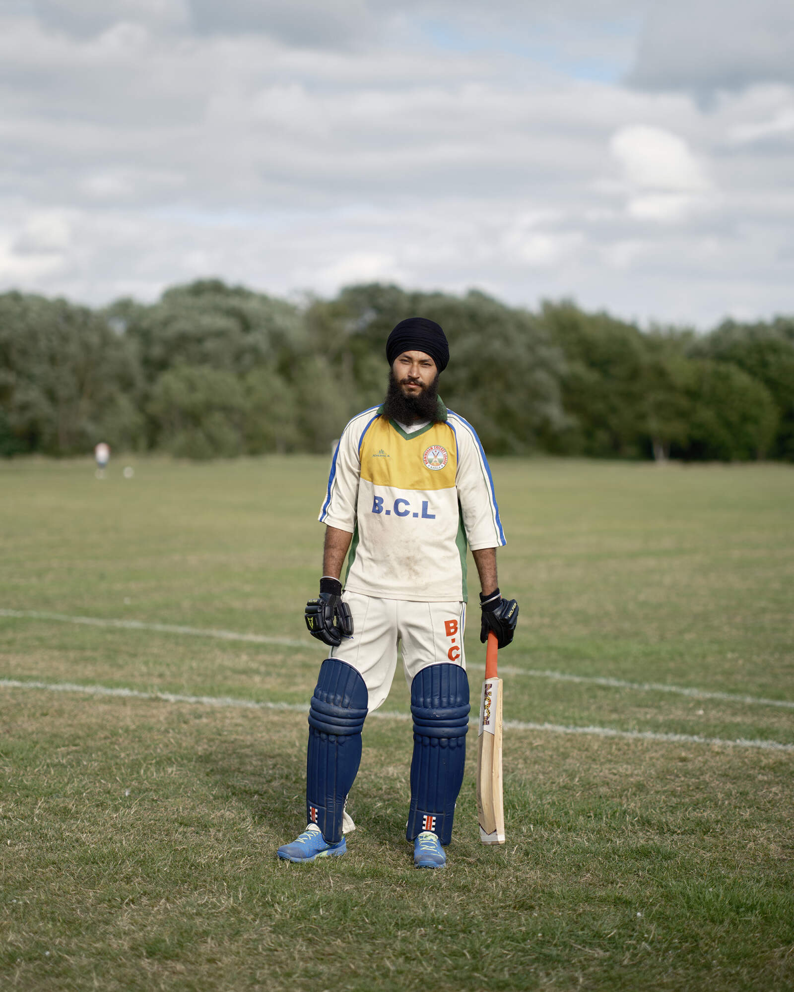 BIRMINGHAM, ENGLAND. Maninder poses for a portrait in the Birmingham Cricket League at Perryhall Park