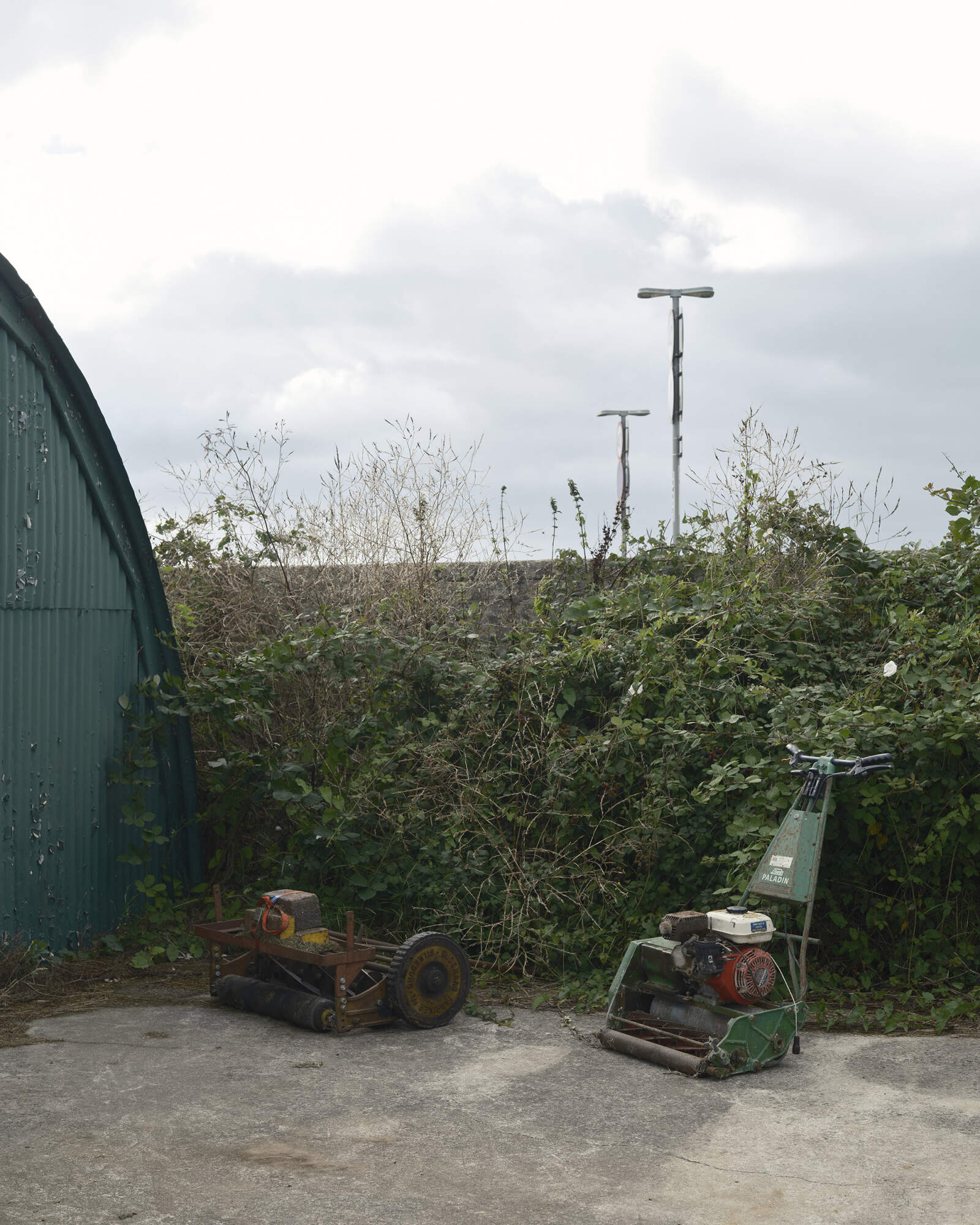PORTLAND, ENGLAND. Lawnmowers at Portland Red Triangle Cricket Club