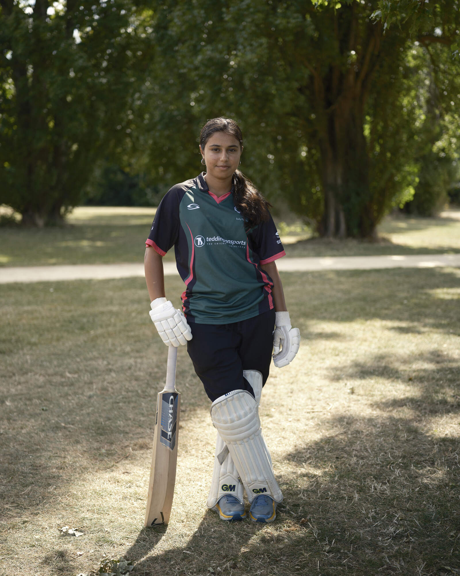 LONDON, ENGLAND. Parina from Hampton Wick Cricket Club poses for a portrait at Hackney Marshes Cricket ground