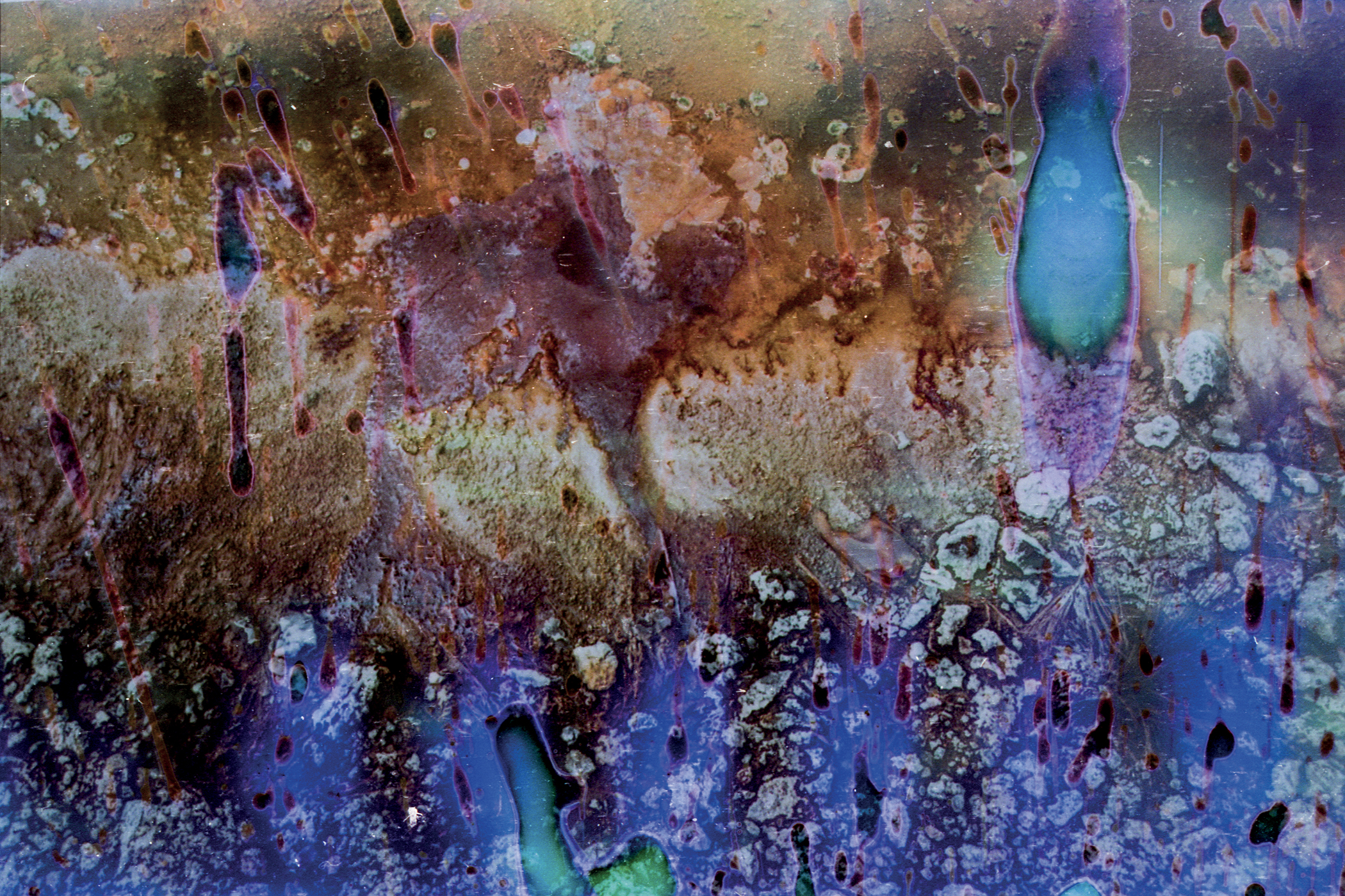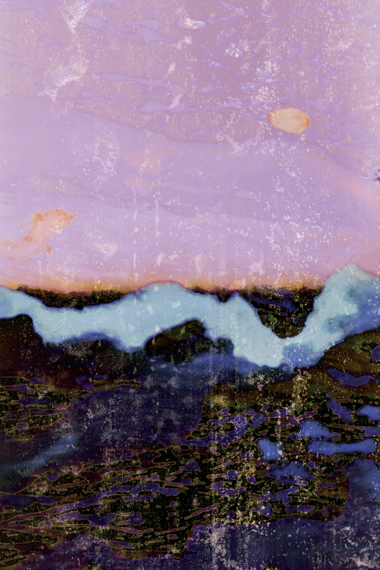 Film developed using water from the Quiulacocha mining waste deposit in Cerro de Pasco. Quiulacocha was a natural lake before it was turned into an unlined waste deposit in the 1950s. Various studies have found that Quillacocha's water contains high concentrations of several heavy metals. From 'Quiulacocha', a visual essay that uses photographic alchemy as a medium and metaphor to address the impact of mining on the health of people in the mining city of Cerro de Pasco, the epicenter of mining activity in Peru and one of the most polluted places in the world.