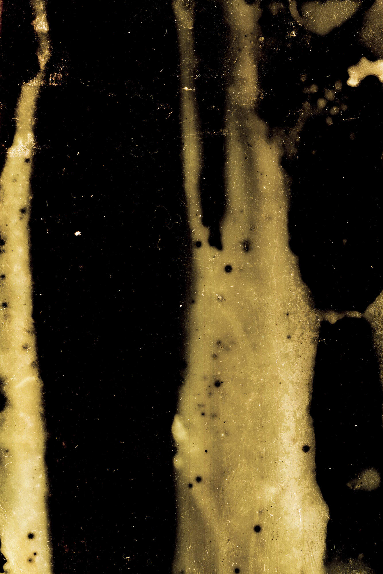 Film developed with water from the Quiulacocha mining waste deposit in Cerro de Pasco, Peru. Quiulacocha was a natural lake before it was turned into an unlined deposit in the 1950s. Today Quiulacocha contains 13 metals in levels way over the permitted limits for water: Cadmium, Arnsenic, Mercury, Zinc, Copper, Nickel, Aluminium, Beryllium. Borom, Cobalt, Iron, Manganese and Selenium.