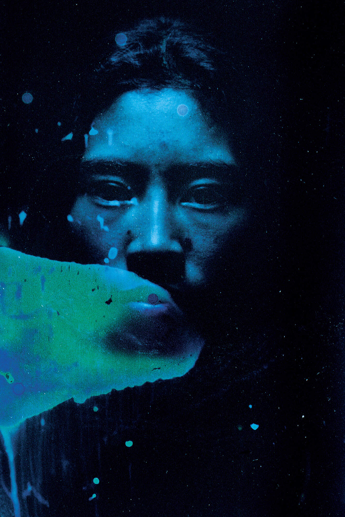 Three years ago, I started collecting samples of water from Lake Quiulacocha to use in developing photographs I take in Cerro de Pasco. The acidic liquid produces stains and hues that manifest unpredictably across faces and landscapes, mimicking the indelible imprint of pollution on life. It was—and is—an attempt to expose the corrosive impacts of mining on people and the environment that aren’t always evident—to make visible what society prefers remain invisible.