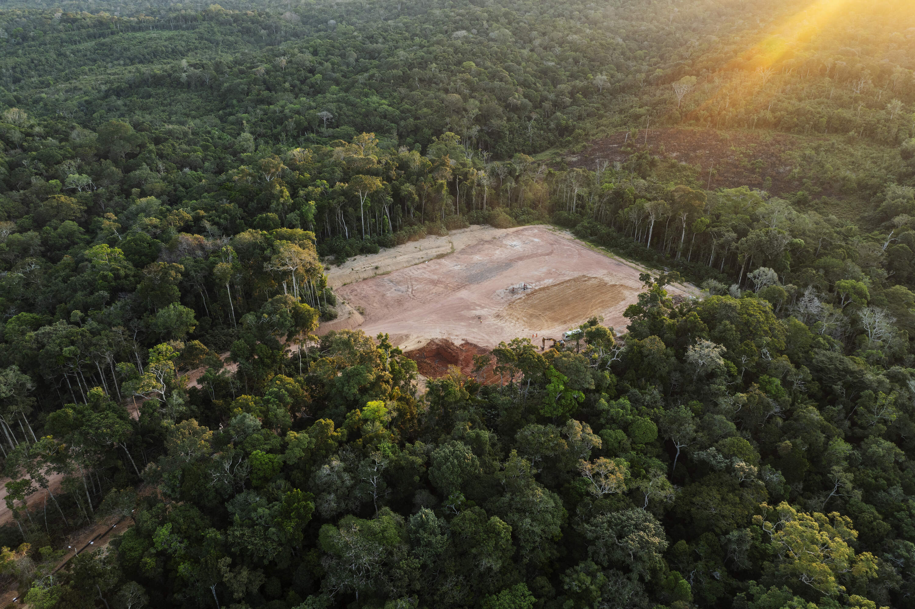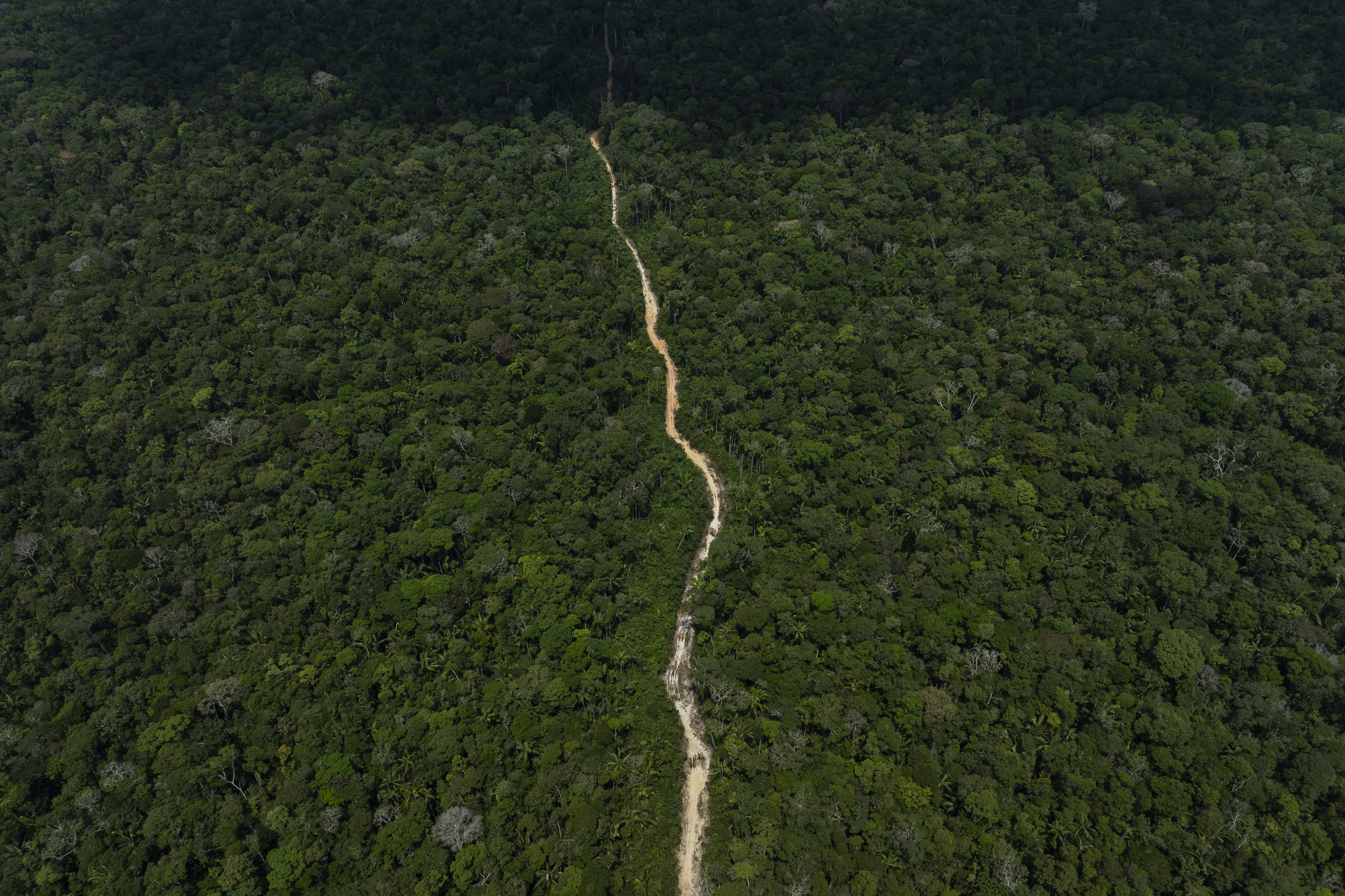 Humaitá, Brasil. September 12, 2025. An illegal branch road leads to a recently deforested area along the BR-319 highway, near the district of Realidade, in southern Amazonas. The prospect of the BR-319 being paved has fueled illegal land sales, land grabbing, and increased deforestation rates.
