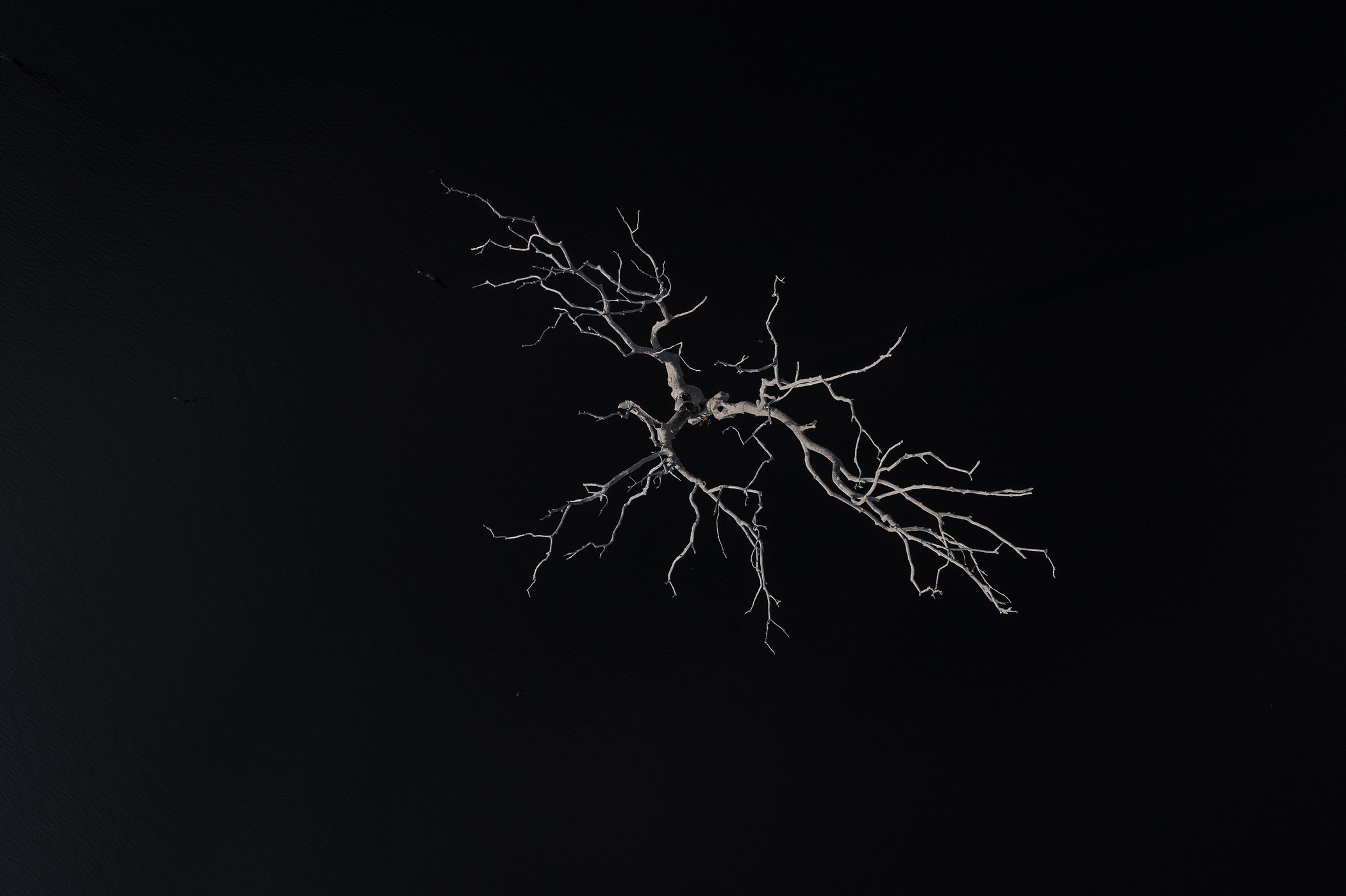 Presidente Figueiredo, Brazil. September 02, 2022. A dead tree in the area flooded by the Balbina hydroelectric dam inside the Waimiri-Atroari Indigenous Land. During the Brazilian military dictatorship (1964 to 1985), large-scale projects were carried out within the territory without any consultation with the Indigenous people, causing a drastic reduction in the Waimiri-Atroari population. A road tore through the territory, a hydroelectric dam flooded part of the forest, and a mining company polluted the rivers that flow through the villages. Only during the construction of the BR-174 highway in the 1970s, which cuts through their traditional territory to connect Manaus to Boa Vista, did the Kinja (as they call themselves) population decrease from 1,500 to 374 Indigenous people.
