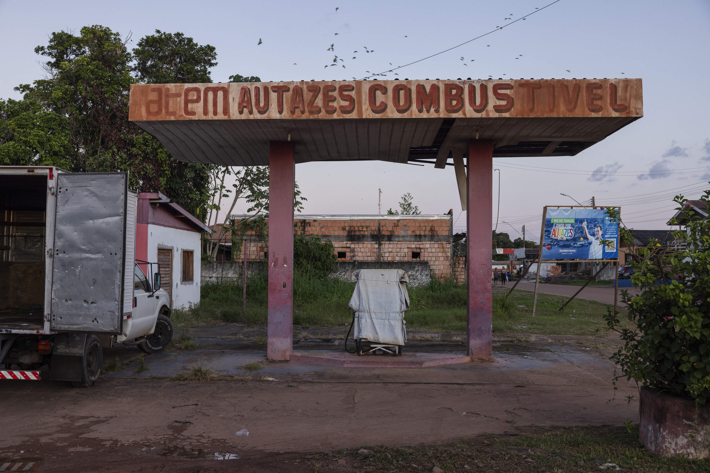 Itaituba, Brazil. May 03, 2025. Entrance to a gas station on the Trans-Amazonian Highway, near Miritituba, Pará. Miritituba will be the final stop of the Ferrogrão railroad, which will be used to transport grain from the Mato Grosso region to the Tapajós River.