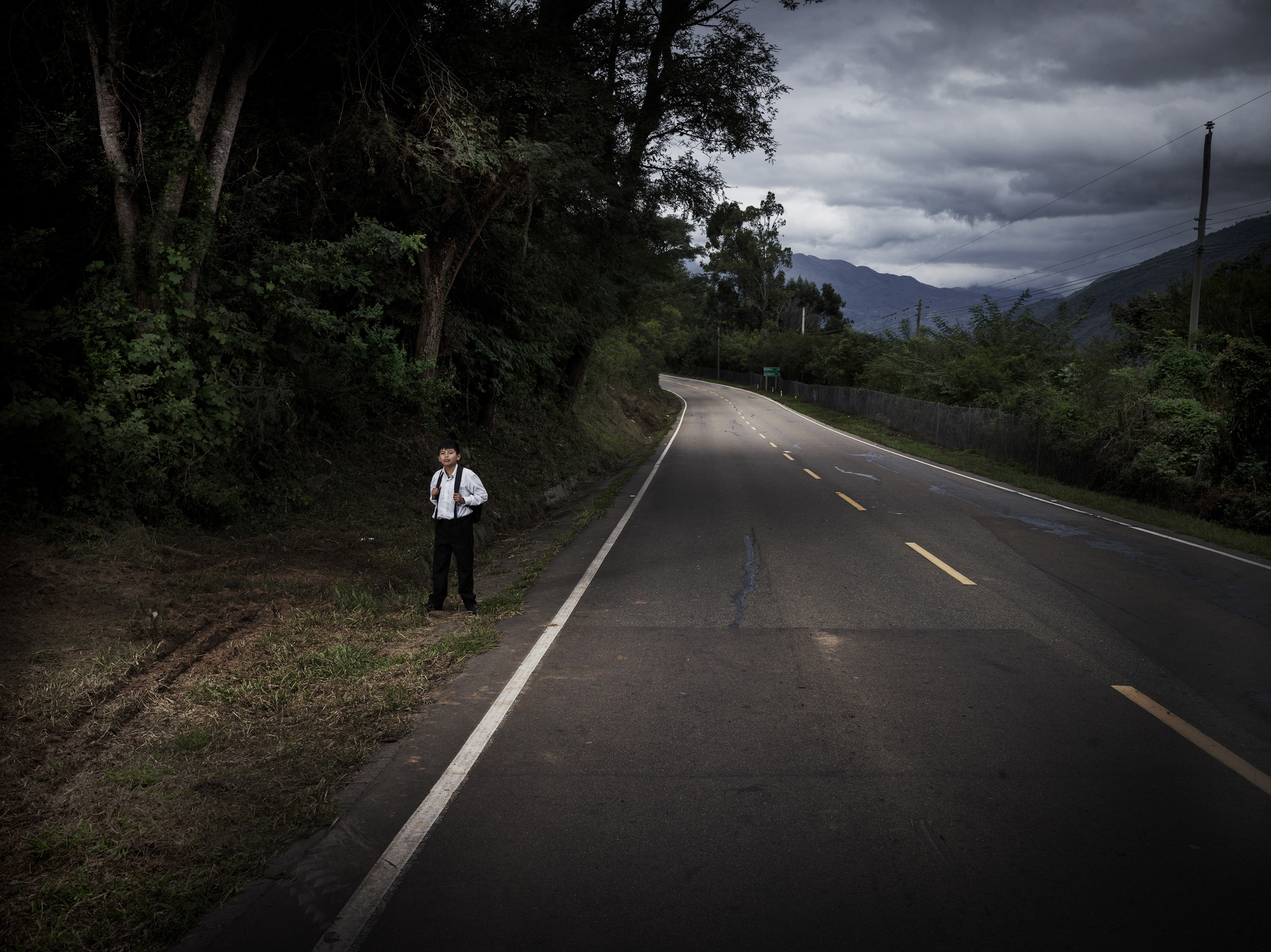 The road to school is not only dangerous because of traffic, it also runs alongside steep cliffs. 'Sometimes there are landslides and hail storms around here', Leandro says. 'When it rains, I feel even more unsafe. Going to school is dangerous.'