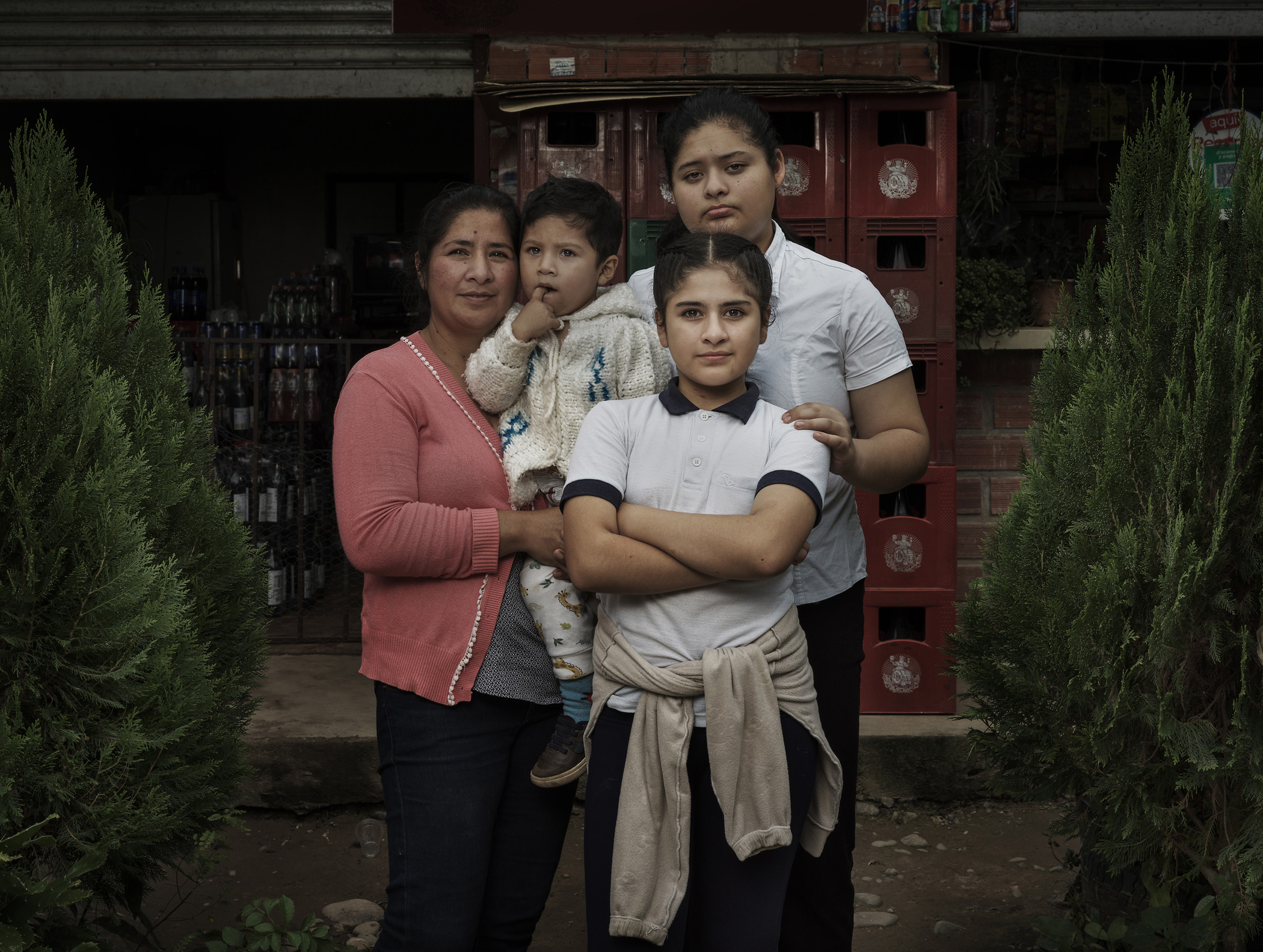 Aleyn (11), Alely (15) and Anthony (2) with mother Dalita. Tarija Department, Bolivia