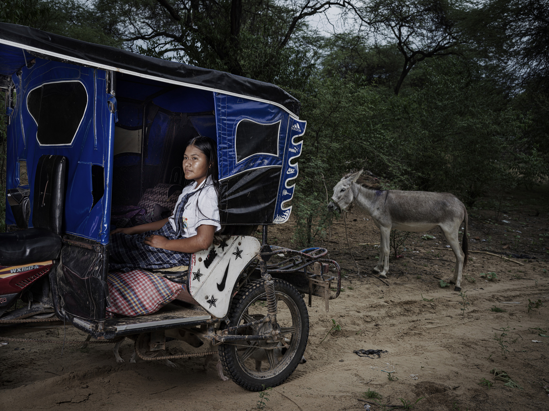 The family depends on the motorbike, which consumes about 30 soles (£6.30) worth of fuel each week. There’s not enough money for maintenance, partly