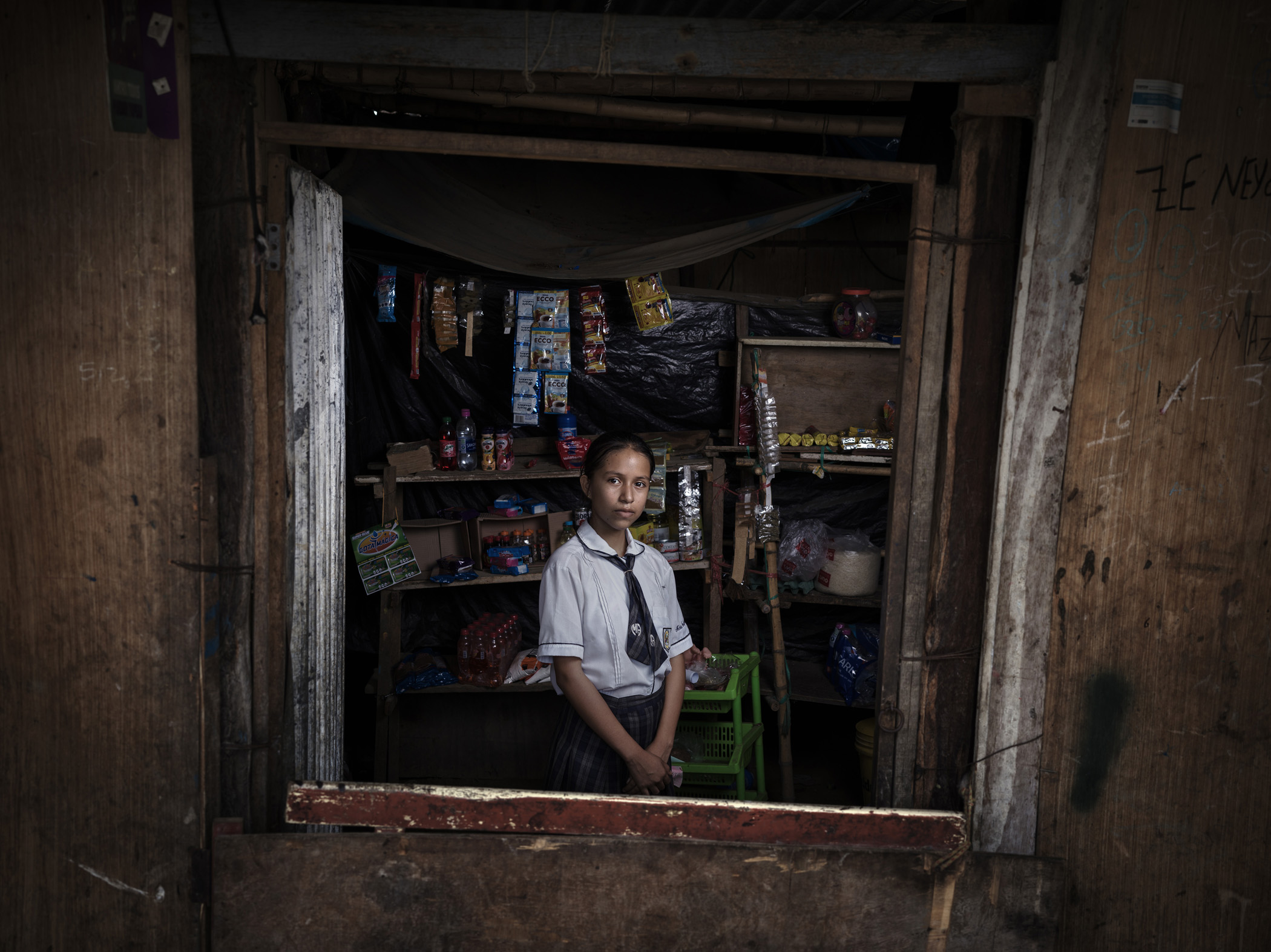 Greysi (13) runs a shop to support herself. Piura region, Peru